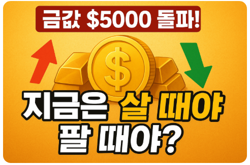 금값 5000달러 돌파는 전 세계 경제 상황의 중요한 지표이자, 많은 투자자들에게 기회와 고민을 동시에 안겨주는 소식입니다. 지금 당장 살지 팔지를 결정하기보다는, 정보들을 바탕으로 글로벌 및 국내 경제 상황, 그리고 유저님들의 투자 목표를 충분히 고려하여 신중하게 판단하시길 바랍니다.